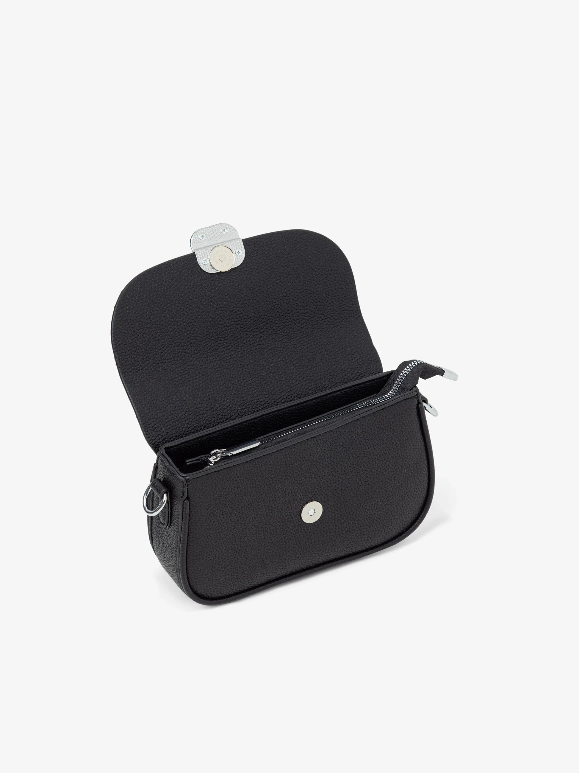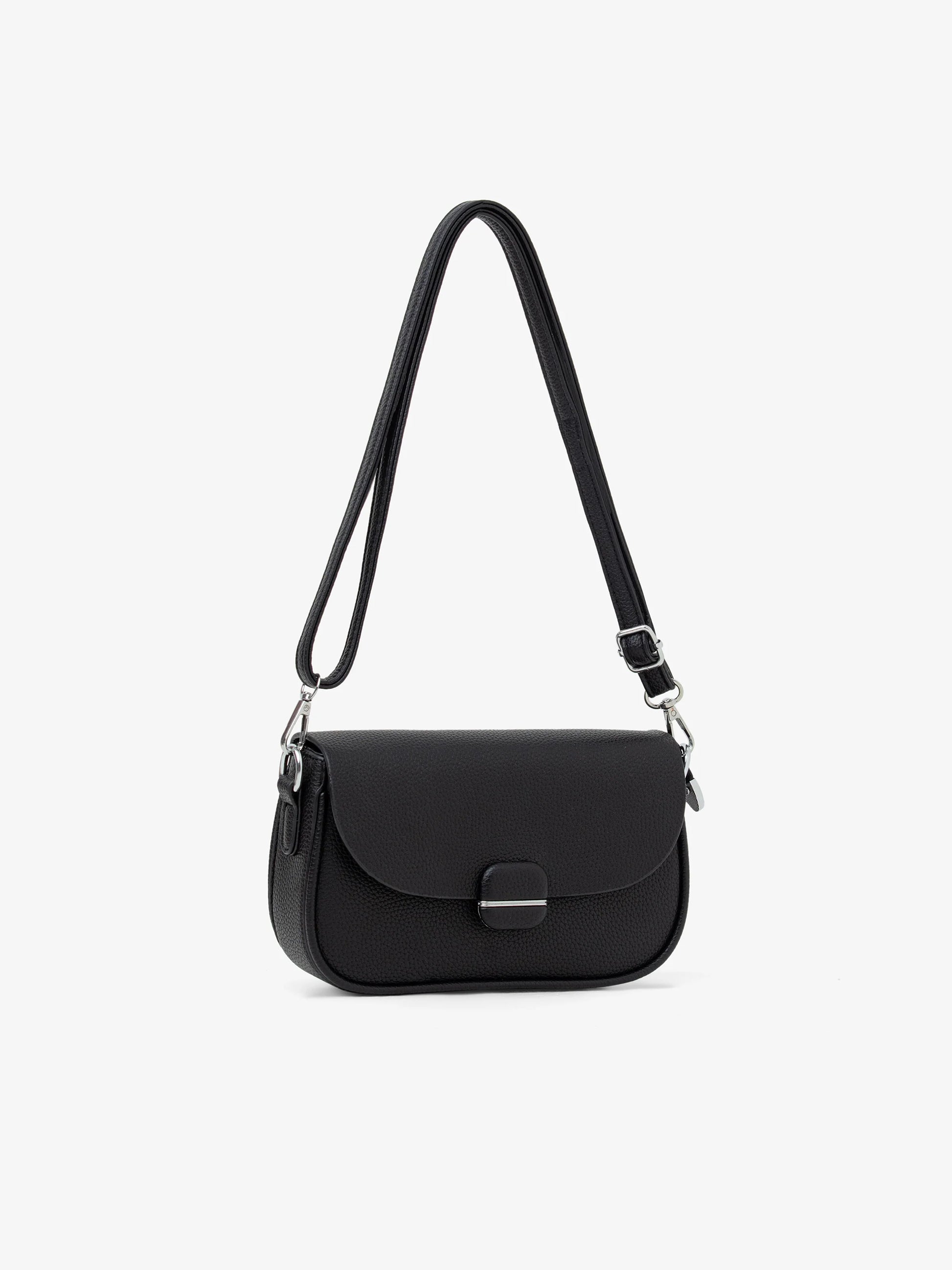 Discover modern elegance with this black textured flap crossbody bag, designed for women who love a sleek, sophisticated look. The bag features a premium quilt-style textured flap paired with a smooth faux-leather body, giving it a luxurious yet minimalist aesthetic. Its structured silhouette, adjustable strap, and metallic clasp add both style and practicality, making it perfect for everyday wear, work, travel, or evening outings.